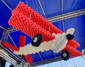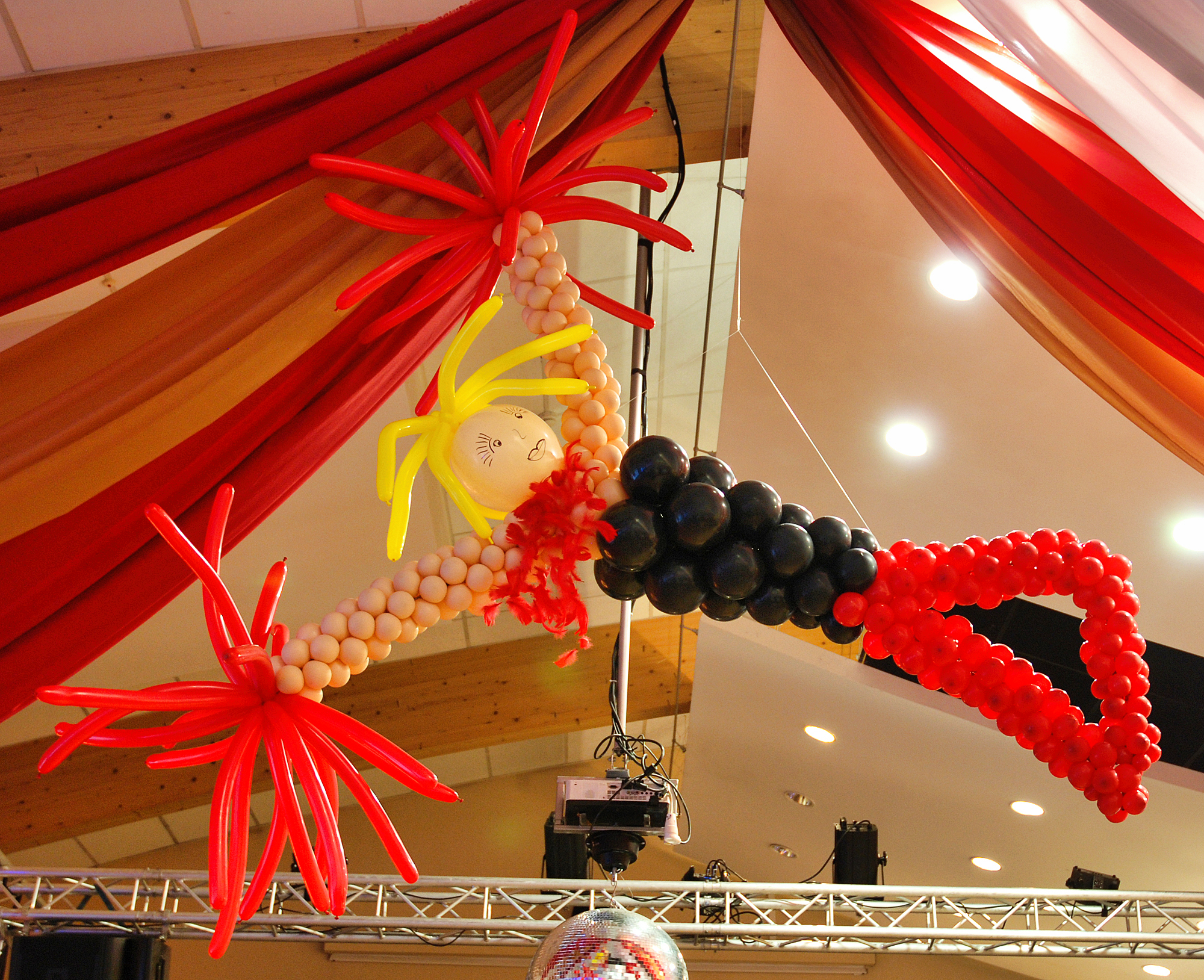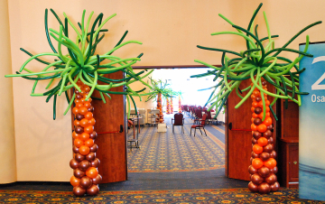 Jak się bawić to tylko z balonami, bo nie ma jak balony - chciałoby się powiedzieć. Niezależnie od tematu imprezy – czy to Karnawał Wenecki, czy Carska Rosja, a może Moulin Rogue lub Kasyno czy też cokolwiek innego – dekoracje balonowe wszędzie świetnie budują klimat. Czy to ściana z logotypem, czy może wieża Eifla lub wielka marchewka – efekt wśród zaproszonych gości zawsze jest ten sam – wielkie WOOOOOOOW :) Balonowe rzeźby czy postacie łączą w sobie kilka elementów, które nadają imprezom ten niepowtarzalny charakter. Z jednej strony są to wartości, jakie nasza podświadomość przywołuje na hasło balony tj. dobra zabawa, radość, uśmiech, szczęście czy beztroskie dzieciństwo. Na drugim biegunie mamy podziw dla umiejętności połączenia balonów w określony kształt. To wszystko razem sprawia, że imprezy, pikniki czy eventy udekorowane za pomocą balonów są dużo lepiej odbierane przez uczestników. We wnętrzach ozdobionych balonami ludzie dużo lepiej się bawią i pełniej wczuwają w nastrój imprezy. Balonowe palmy przenoszą uczestników na Hawaje, rakiety w kosmos, a żyrafa na sawannę. Z chęcią podejmiemy się wyzwania udekorowania Państwa imprezy. Zadzwoń i dowiedz się więcej tel. 692404926.
