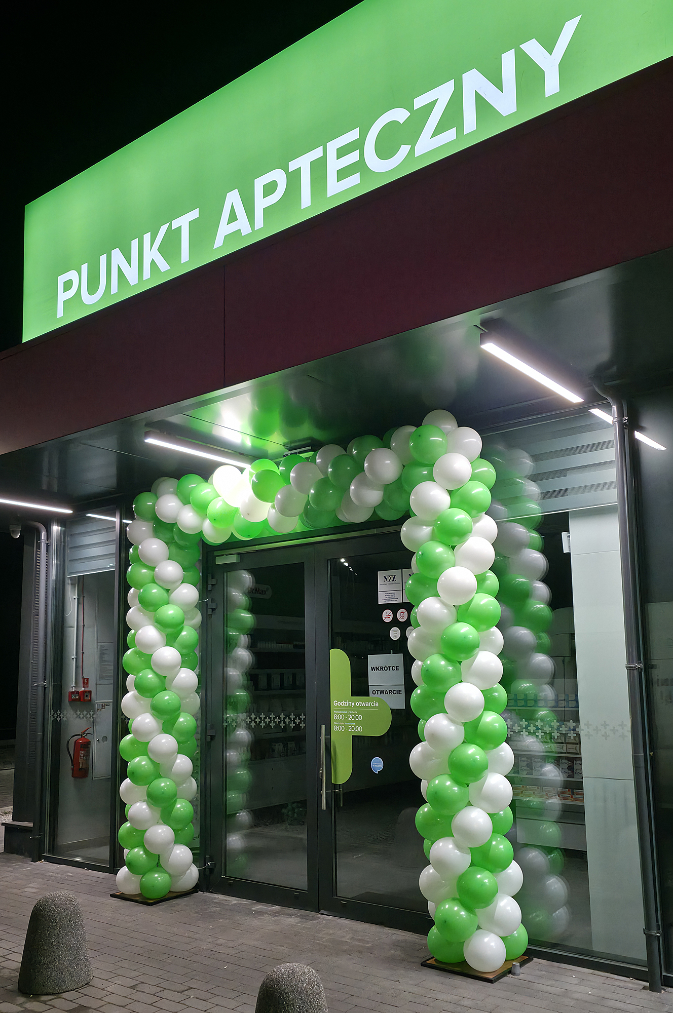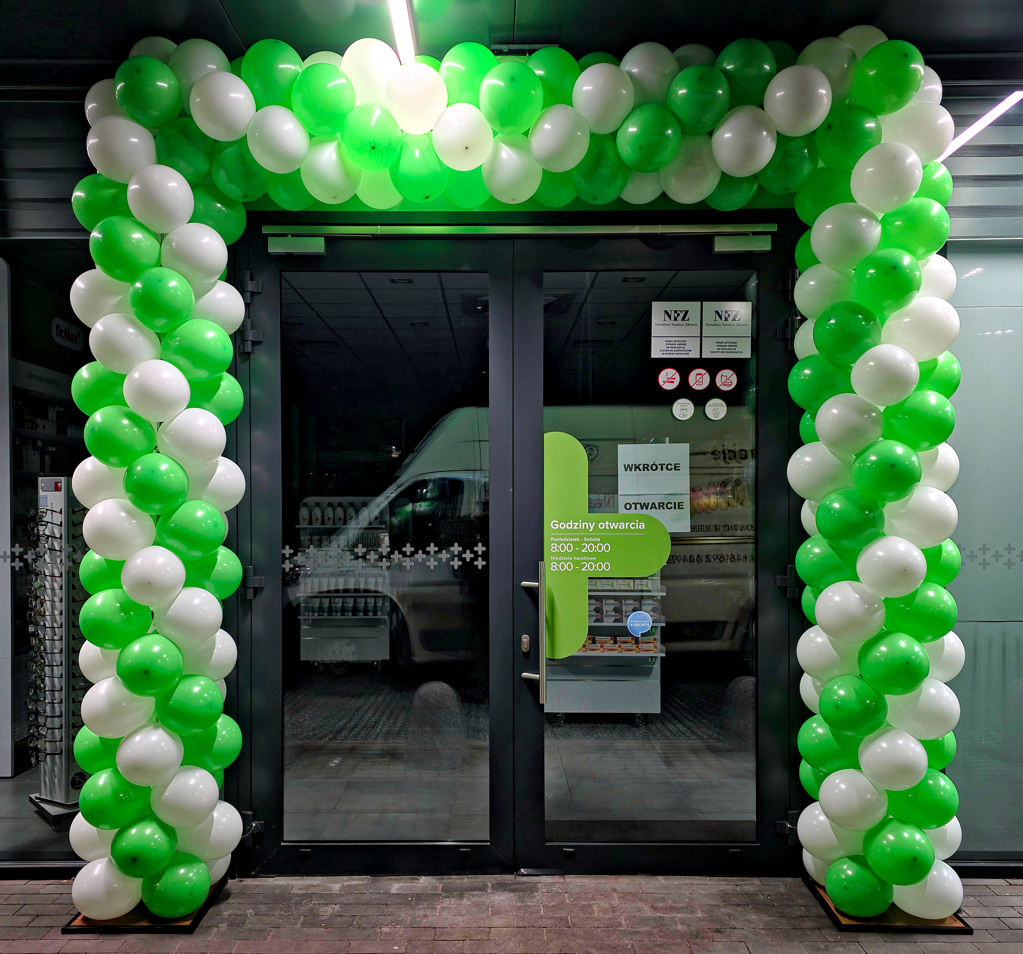 Bramę z balonów postawiliśmy dziś rano w miejscowości Łany w N-Parku. To dekoracja z okazji otwarcia nowego Punktu Aptecznego sieci DrMax. Brama została wykonana z balonów w biało-zielonej kolorystyce jak to zazwyczaj przy dekoracjach dla tej grupy. Instalacja ta z pewnością zwróci uwagę klientów N-Parku i zaprosi ich do odwiedzenia nowej apteki. Balony widoczne są również z przebiegającej obok Wschodniej Obwodnicy Wrocławia. Dzięki temu duża ilość przejeżdżających nią kierowców również zwróci uwagę na nową aptekę. Jeśli również chcielibyście aby klienci zauważyli Wasz lokal zapraszamy do skorzystania z naszych dekoracji balonowych – dzwońcie na 692404926.