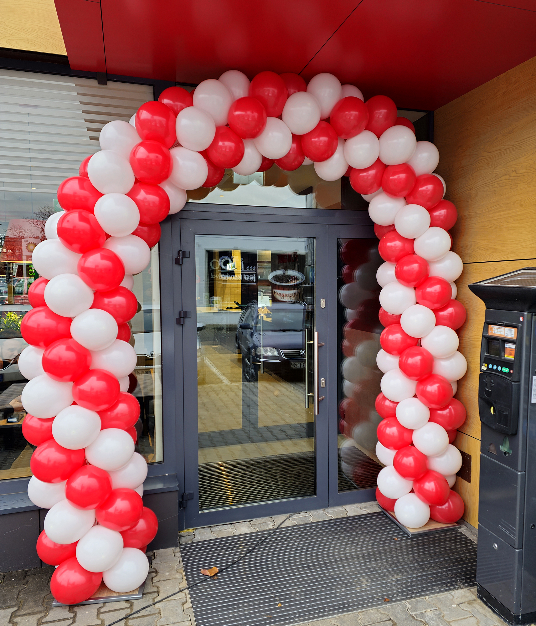 Bramę z balonów zamontowaliśmy we Wrocławiu na alei Kromera. To dekoracja z okazji otwarcia restauracji KFC. Lokal ten przez parę miesięcy był zamknięty i przechodził gruntowny remont. Odświeżeniu uległa sala i kuchnia. I teraz ponownie został otwarty i zaprasza klientów. Aby pokazać to wizualnie przed wejściem do restauracji zamontowaliśmy bramę balonową. Musieliśmy wcisnąć ją pod daszek i ograniczającą nas z prawej strony ścianę, ale ostatecznie łuk balonowy został zamontowany. Dzięki temu potencjalni klienci od razu widzą że restauracja jest otwarta, działa i zaprasza. Jeśli również chcecie zaprosić klientów do swoich lokali zapraszamy do kontaktu z nami – 692404926.