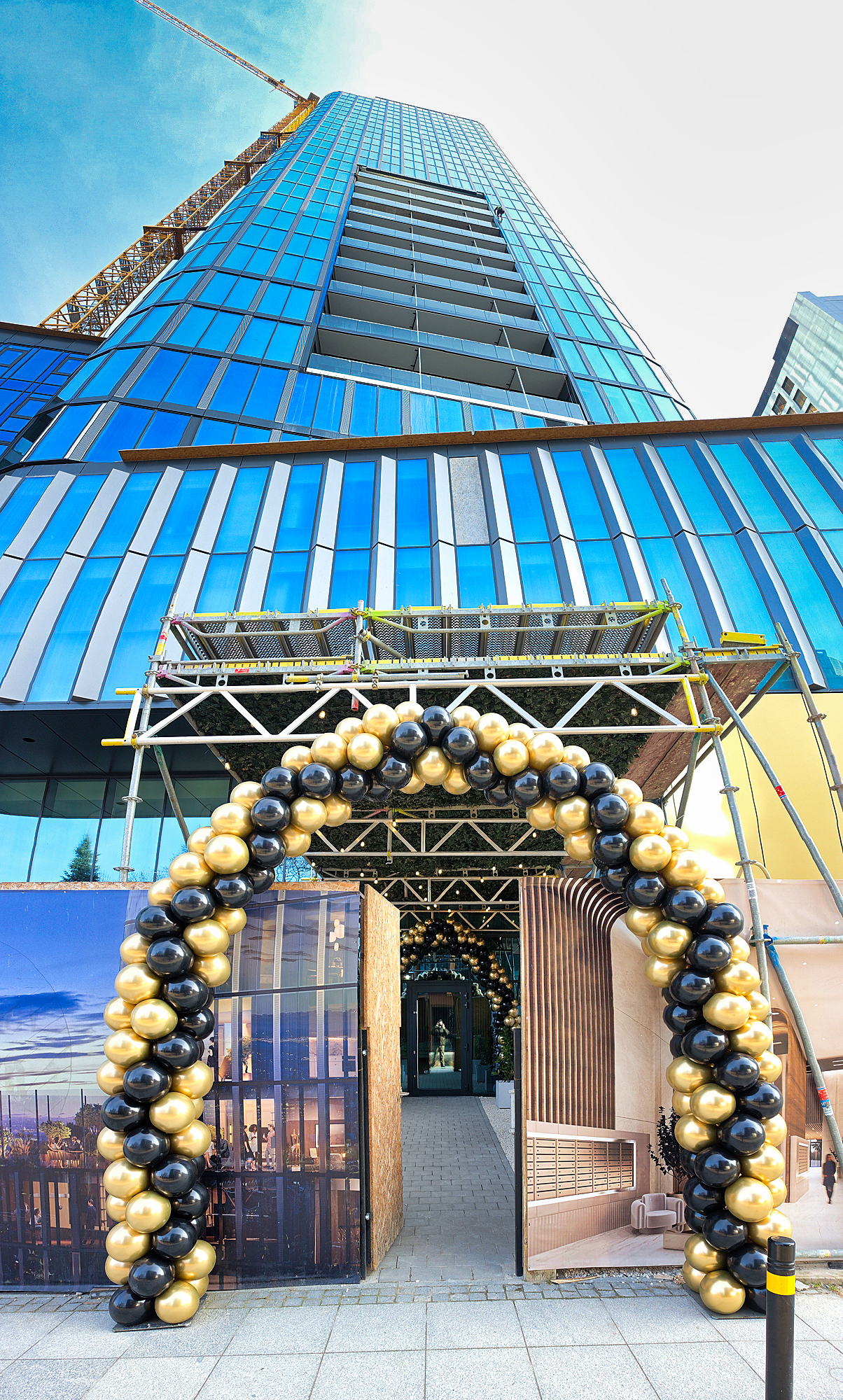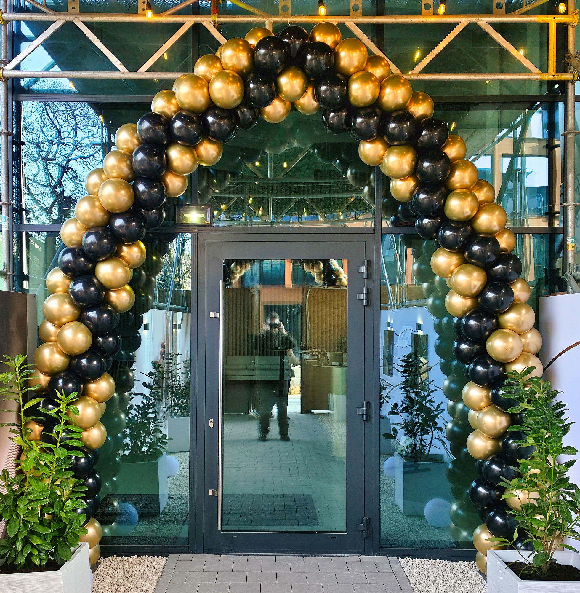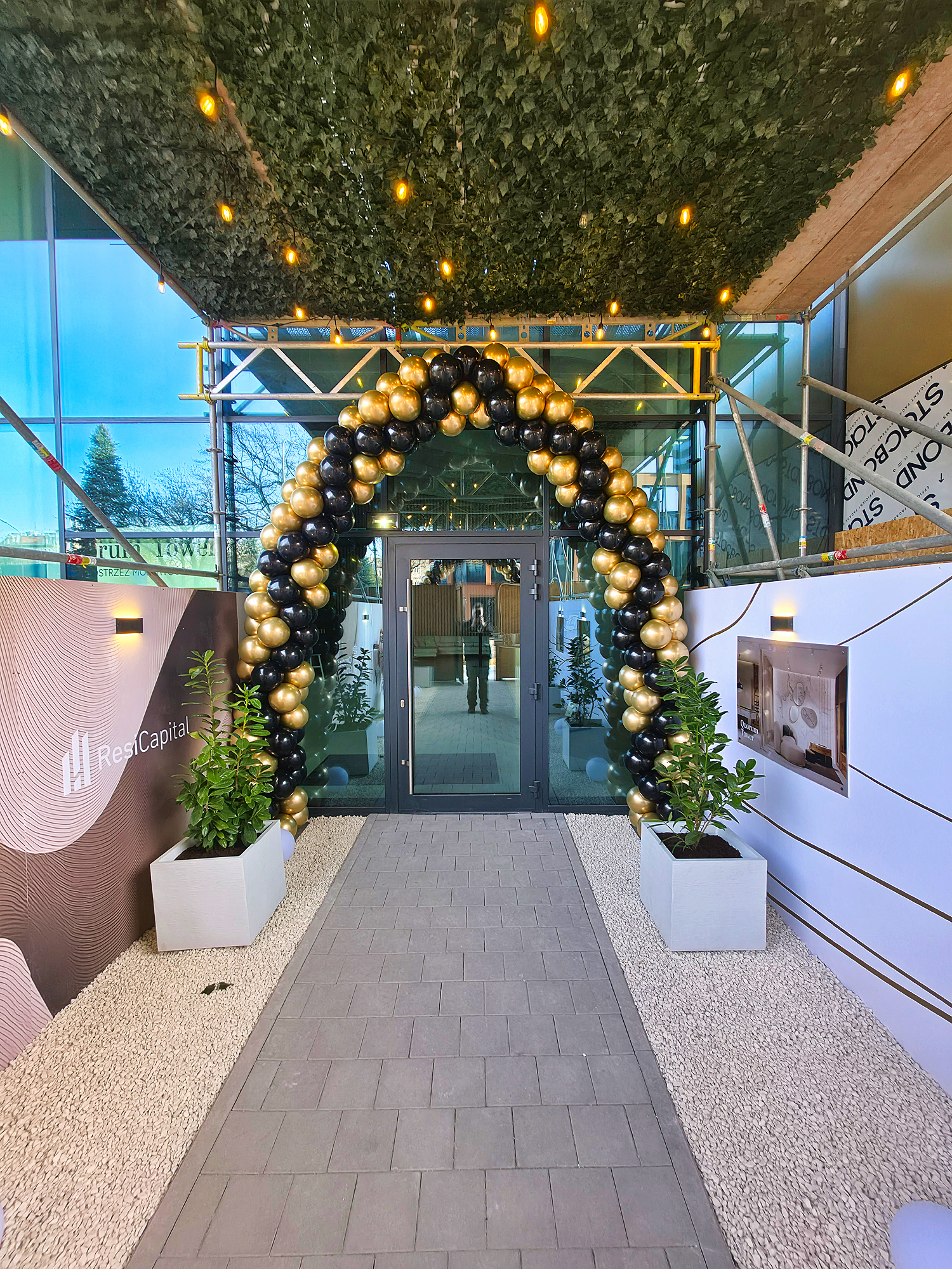 Bramy z balonów wykonaliśmy w niedzielę rano na ulicy Sikorskiego we Wrocławiu. To dekoracje na dzień otwarty u dewelopera budującego nowy wrocławski wieżowiec. Pierwsza brama stanęła bezpośrednio przy ulicy aby goście już z daleka mogli zlokalizować miejsce wejścia. Eleganckie złoto czarne balony ułożyliśmy w nietypowy sposób. Dzięki temu widok ba tą balonową bramę zarówno od przodu jak i z boku dawał nowy, ciekawy efekt. Zobaczcie zresztą sami na załączonych zdjęciach. Kolejną bramę zamontowaliśmy już bezpośrednio przy wejściu do budynku. Użyliśmy tu tego samego układu balonów. Jak Wam się podoba takie rozwiązanie. Chcielibyście takie u siebie?- Na swoich otwarciach, urodzinach czy promocjach?- jeśli tak to piszcie na: biuro@gaudeo.pl, na pewno pomożemy.