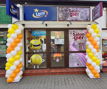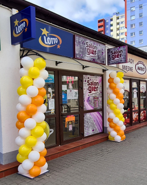 Dekoracja z balonów dla kolektury Lotto na ulicy Strzegomskiej we Wrocławiu