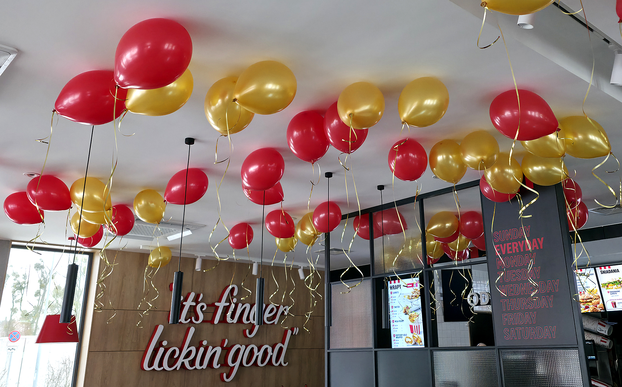 Dekoracja z balonów na otwarcie restauracji KFC W Starogardzie Gdańskim