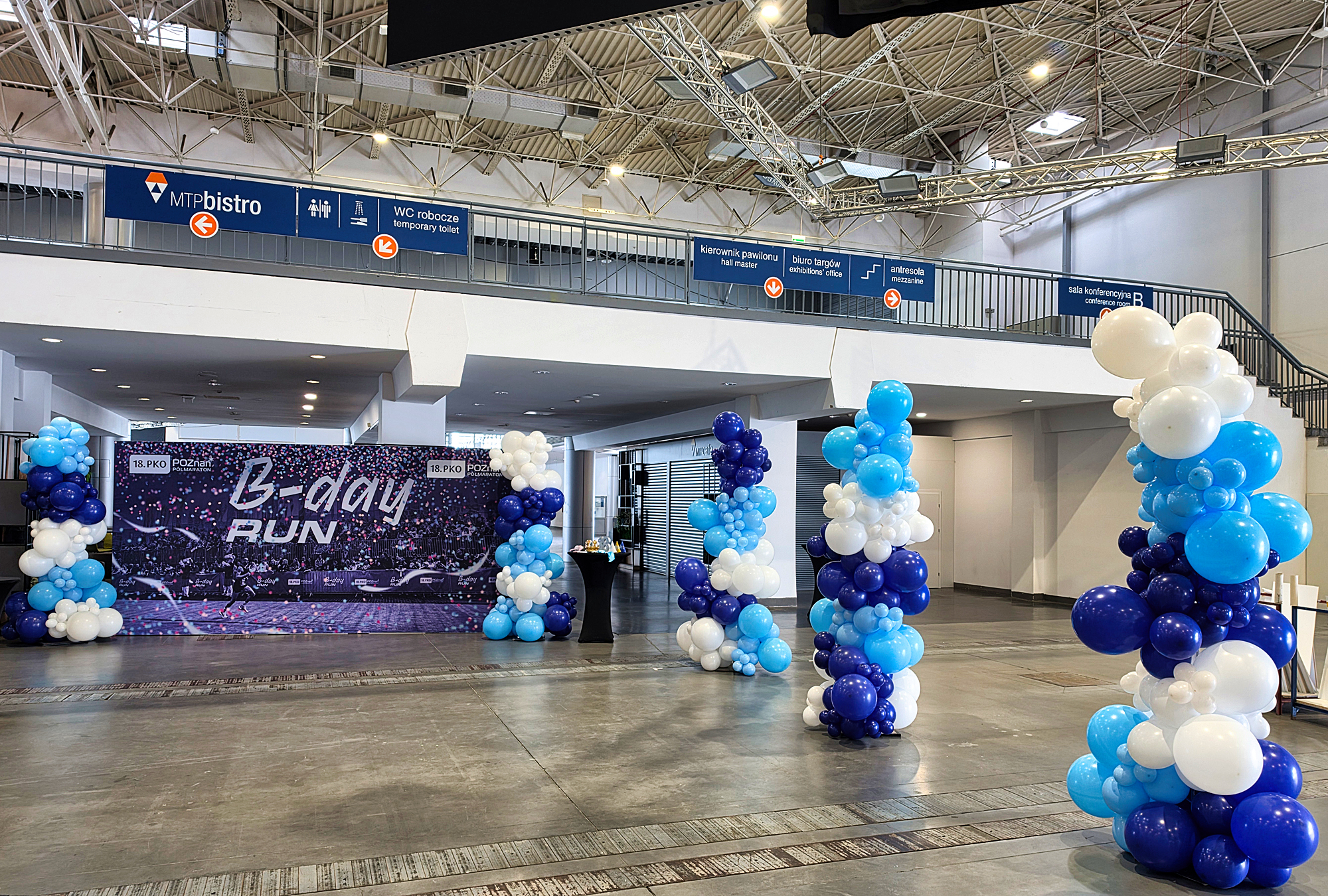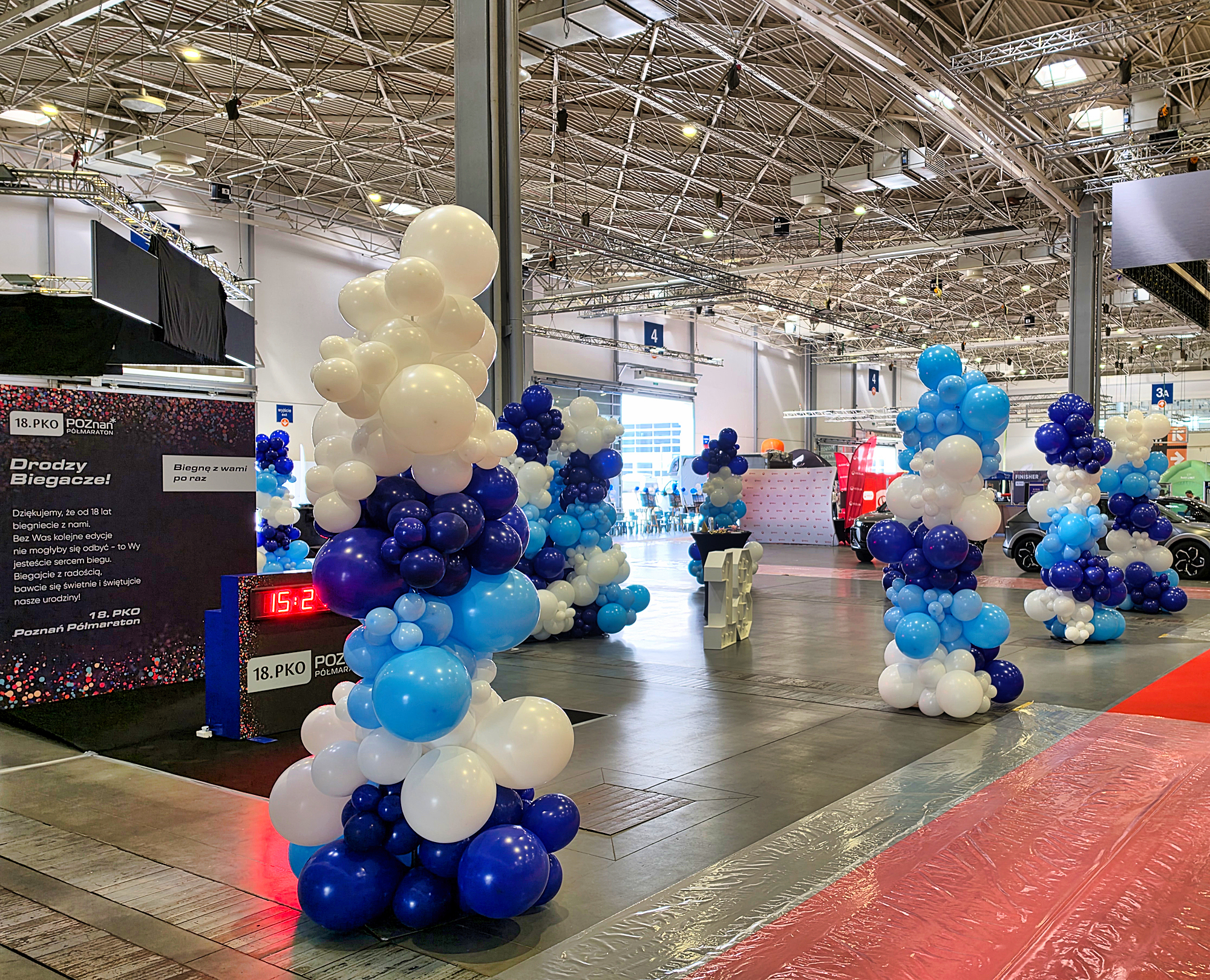 Dekoracje z balonów w halach MTP w Poznaniu na 18 poznański półmaraton