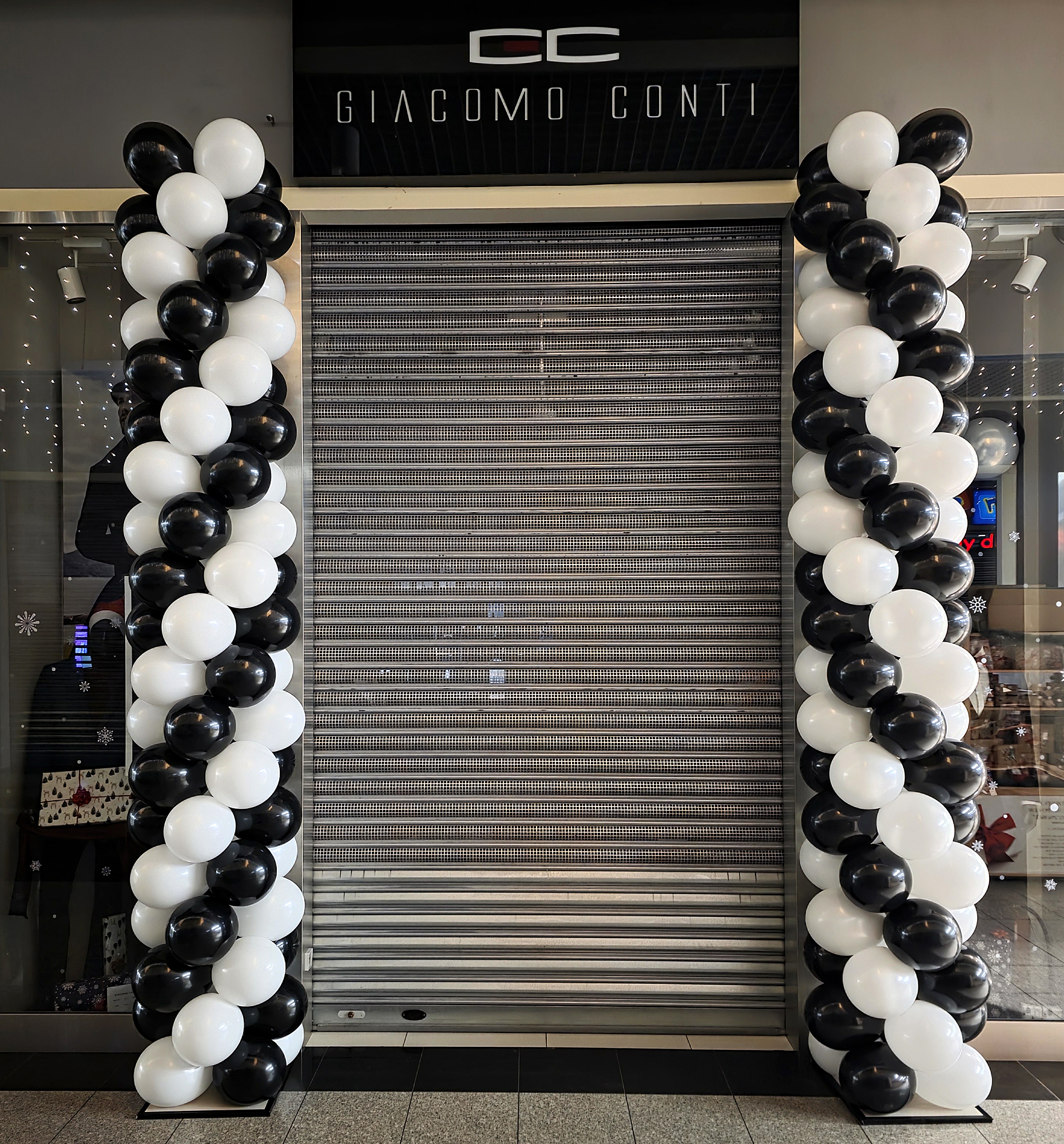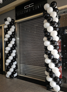 Wysokie kolumny z balonów zainstalowaliśmy w Galerii Świdnickiej. Jak nietrudno się domyślić znajduje się ona w Świdnicy :D Balony zamontowaliśmy przy wejściu do salonu z odzieżą męską należącym do marki Giacomo Conti. Balony w biało-czarnej kolorystyce z pewnością zwrócą uwagę klientów galerii na ten salon. Większa uwaga przełoży się na większy ruch a ten na większą sprzedaż a na tym przecież wszystkim zależy. Jeśli więc również chcielibyście zwiększyć sprzedaż w swoich lokalach zapraszamy do kontaktu z nami: biuro@gaudeo.pl