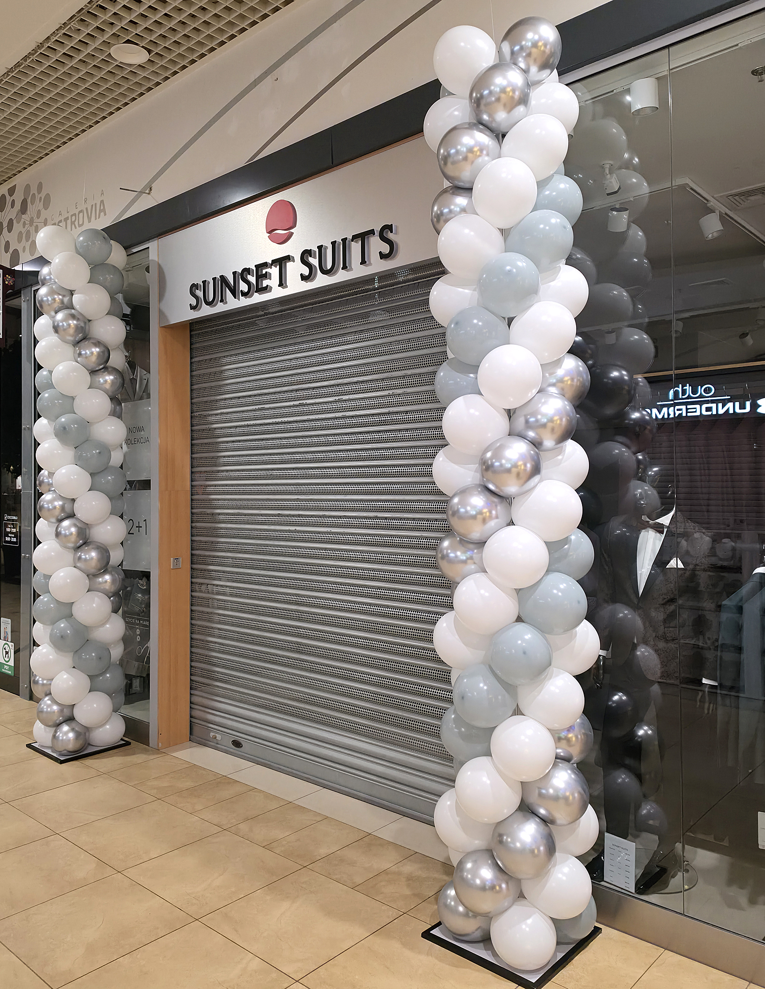 Kolumny z balonów dla salonu Sunset Suits w Galerii Ostrovia