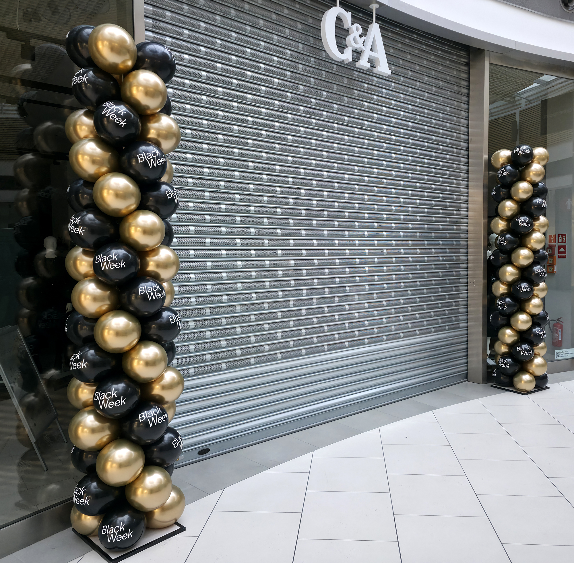 Kolumny z balonów na akcję Black Week w salonach C&A