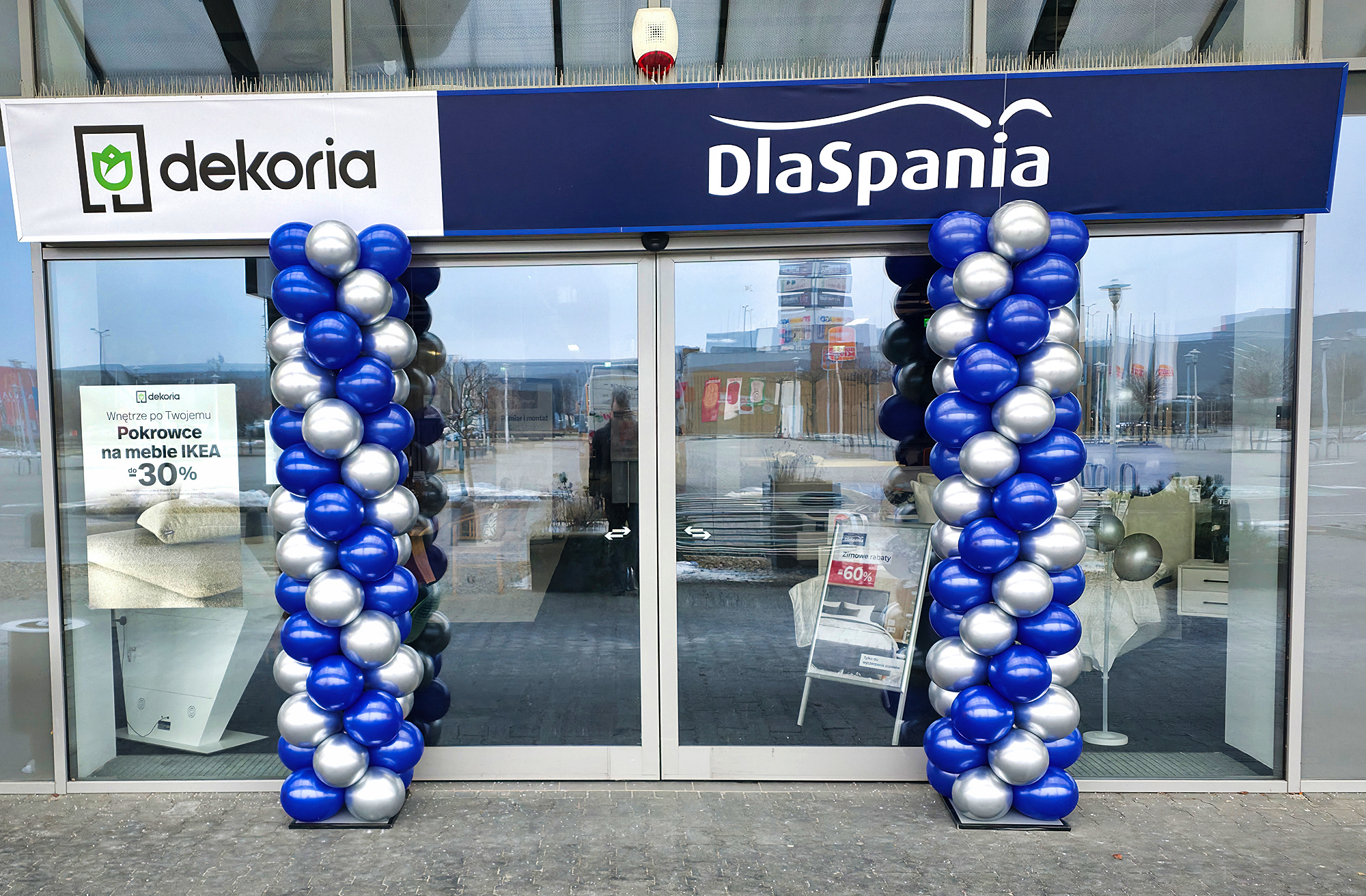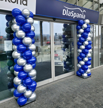 Kolumny z balonów dostarczyliśmy do salony Dla Spania w Alei Bielany. Tam zainstalowaliśmy je przed wejściem do sklepu. To dekoracja mająca za zadanie zwrócić uwagę klientów na atrakcyjne promocje przygotowane przez ten punkt. Dzięki balonom klienci już z daleka zobaczą że warto wejść do salonu i zapoznać się z ofertą. Jeśli również chcielibyście się wyróżnić i zwrócić uwagę na Wasze sklepy, zapraszamy do kontaktu z nami – tel. 692404926.
