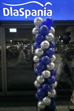 Kolumny balonowe dostarczyliśmy do wrocławskich salonów DlaSpania. To dekoracje z okazji szesnastych urodzin tej grupy. Najpierw więc udaliśmy się do Domaru gdzie postawiliśmy dwie pierwsze kolumny ułożone z złoto-granatowych balonów. Kolejnym przystankiem była Aleja Bielany. Tam przed salonem z wejściem bezpośrednio z parkingu zamontowaliśmy srebrno-granatowe balony. Kolejne kolumny z balonów stanęły przed placówką usytuowaną wewnątrz galerii. Dzięki takiej szybkiej akcji balonowe dekoracje pojawiły się przed każdym z salonów. Zwracają teraz uwagę klientów na ten promocyjno-urodzinowy czas w którym sklepy przygotowały atrakcyjne rabaty da klientów. Jeśli je odwiedzicie to również możecie skorzystać. Skorzystacie też jeśli zamówicie balony do swoich lokali, śpieszcie się więc i dzwońcie: 692404926.