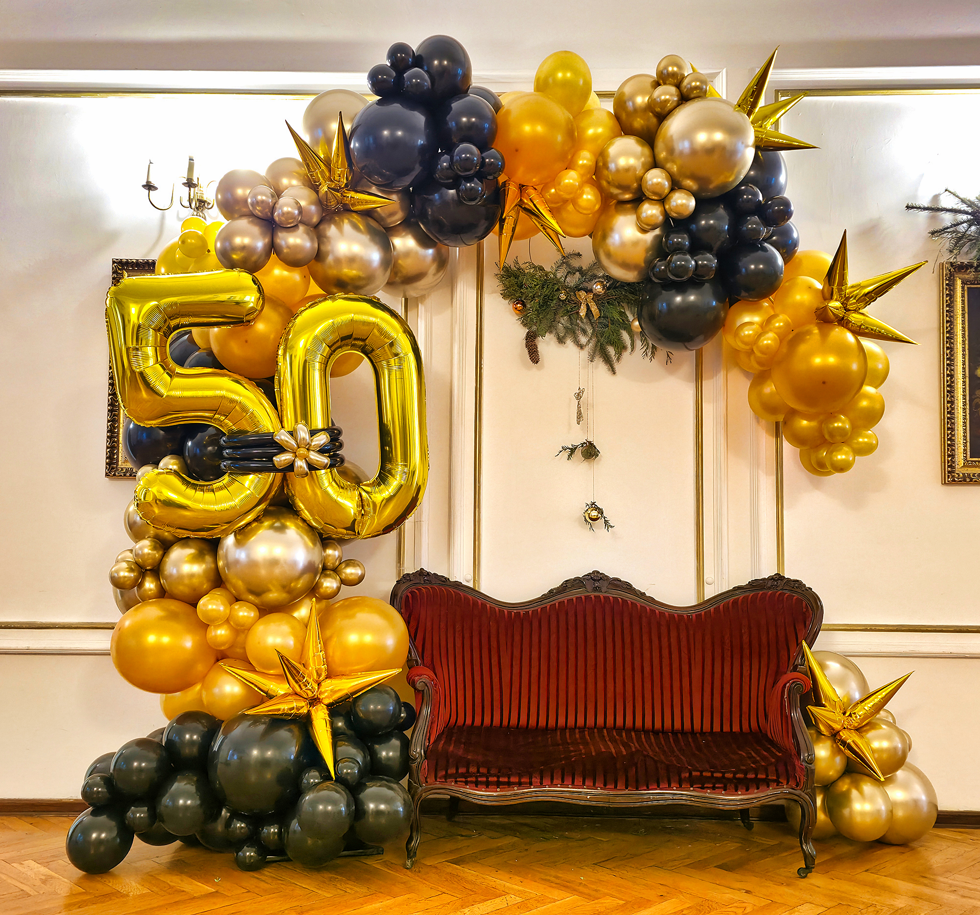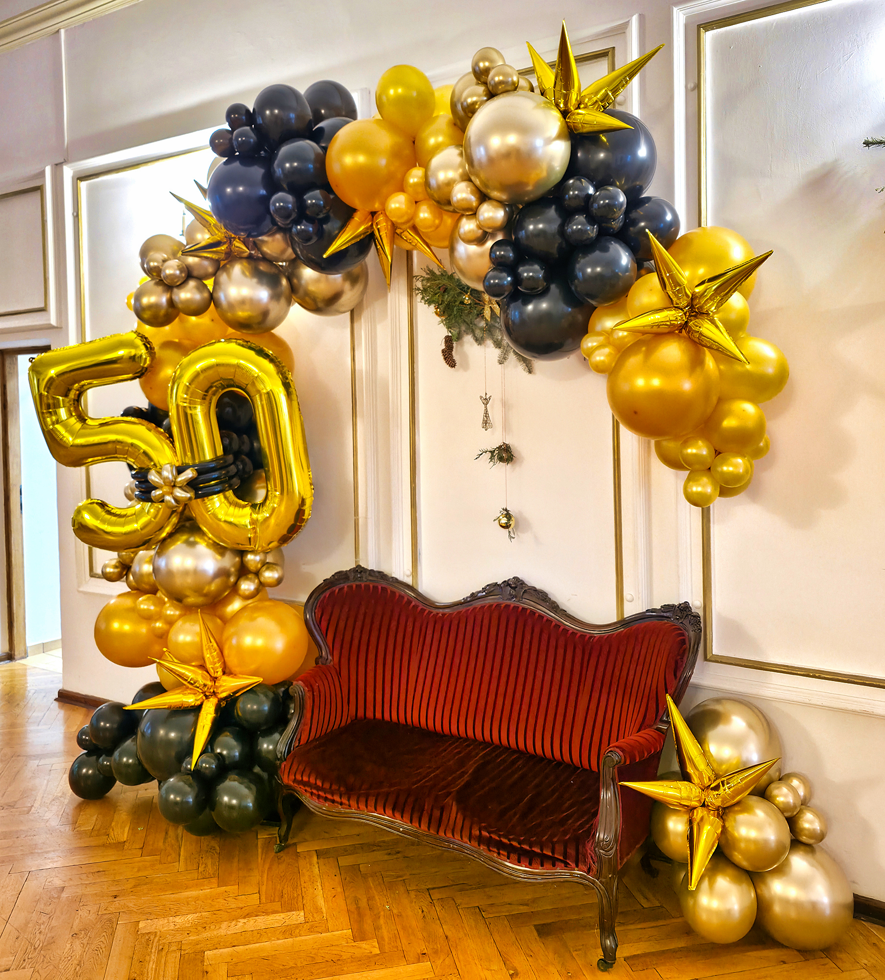Organiczna dekoracja z balonów na 50 urodziny w Dworze Polskim