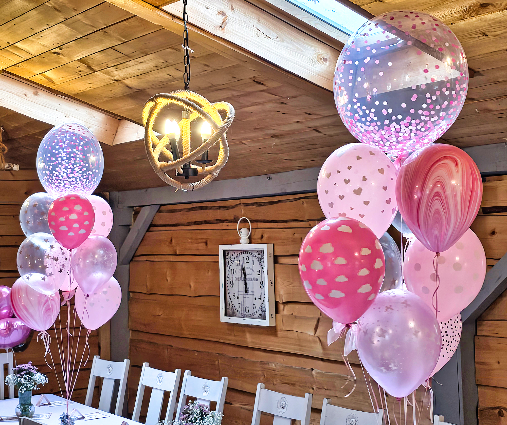 Balonową dekorację urodzinową wykonaliśmy w jednej z sal restauracji Zielona Oliwka koło Wrocławia. Głównym elementem była urodzinowa ścianka z balonów do zdjęć. Zbudowana została wokół banneru okolicznościowego przygotowanego przez naszego klienta. Otoczyliśmy go organiczną girlandą z balonów. Z jednej strony ścianki dodatkowo pomiędzy balony wpuściliśmy świecący wąż ledowy co dało ciekawy i nowoczesny efekt dekoracyjny. Dodatkowo przygotowaliśmy bukiety balonów z helem które ustawiliśmy na stołach. Do ich przygotowania użyliśmy balonów z nadrukami dodatkowo wplatając balony przeźroczyste aby całość była bardziej lekka wizualnie. Wszystkie te dekoracje balonowe przygotowaliśmy na bazie odcieni koloru różowego z dodatkami srebra. Jak Wam się podoba ta ścianka z balonów do zdjęć?- była by atrakcyjną pamiątką?- jeśli chcielibyście mieć taką u siebie zapraszamy do kontaktu z nami: biuro@gaudeo.pl.