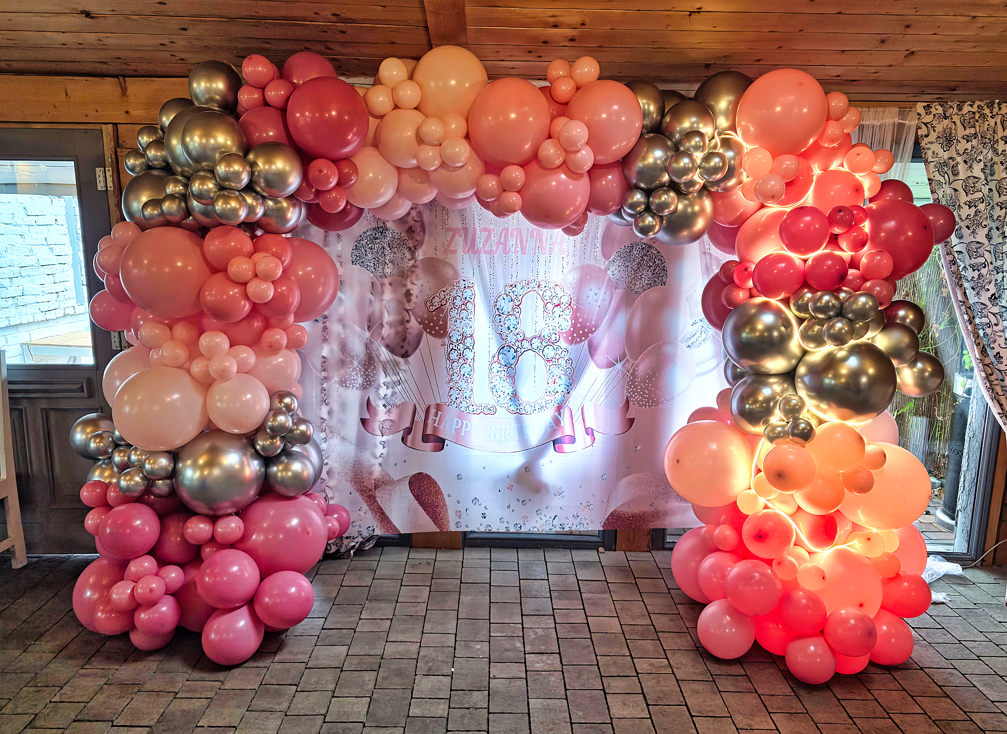 Ścianka z balonów na osiemnaste urodziny w Zielonej Oliwce koło Wrocławia