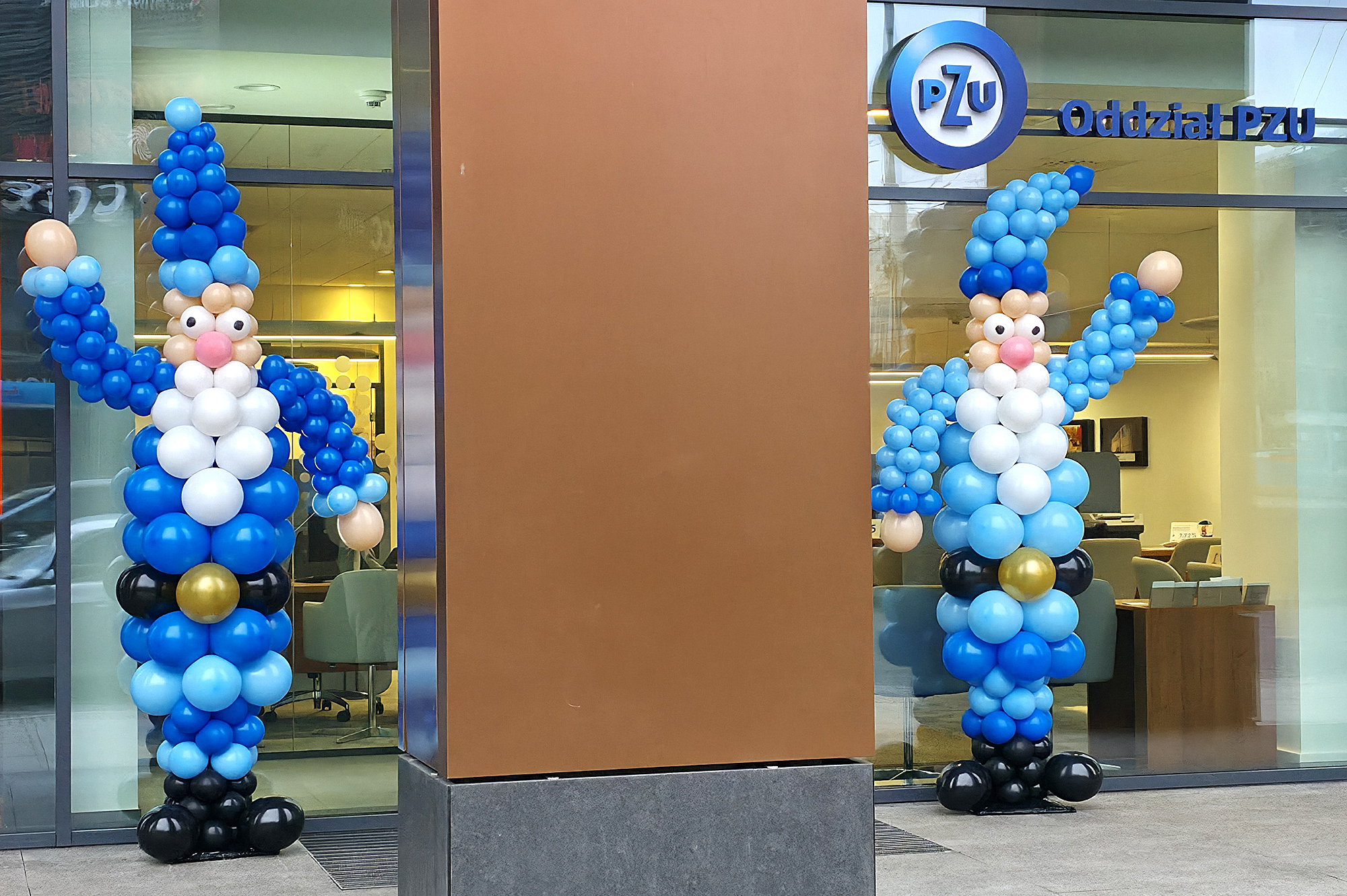 Wrocławskie krasnale z balonów na otwarcie oddziału PZU we Wrocławiu