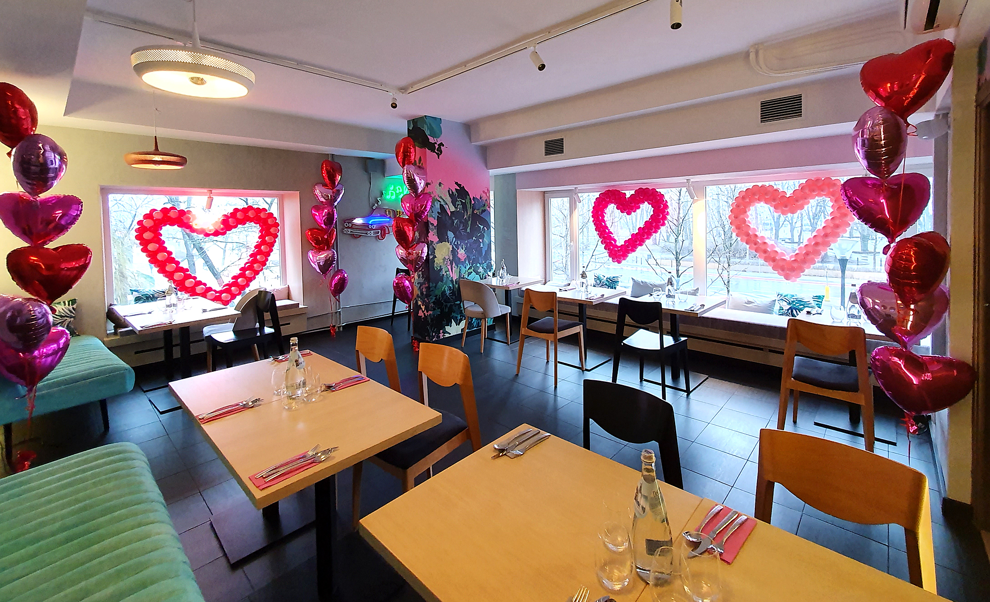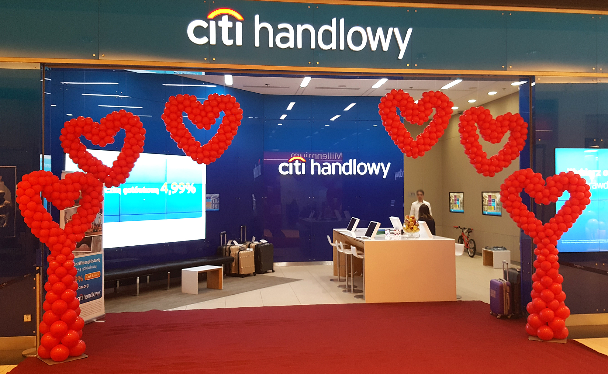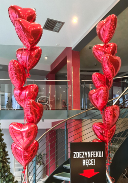 Walentynki to szczególny czas, kiedy okazujemy sobie miłość i radość. To również czas dekoracji spod znaku Amora – balonowych serduszek, misiów czy kwiatków. Chcesz, aby Twój sklep, galeria czy kawiarnia zyskały niepowtarzalny słodko-czerwony klimat miłości – zleć nam wykonanie balonowej dekoracji swojego obiektu. I niezależnie czy potrzebujesz zbudować nastrój małej przytulnej kawiarenki, czy to samo zadanie stawia wielkie centrum handlowe, balony nadadzą się wyśmienicie. Oczywiście w małych obiektach lepiej sprawdzą się serduszka z helem, kwiatki skręcone z balonów i niewielkie serca balonowe pod sufitem czy na ścianach, natomiast dużym galeriom zaproponujemy czerwone bramy z balonów w kształcie serca, kolumny z sercami, duże serca balonowe, czy też czerwono-różowe girlandy. Wszystkie te kompozycje genialnie wprowadzą w Waszych lokalach ten słodki czar dnia Świętego Walentego.