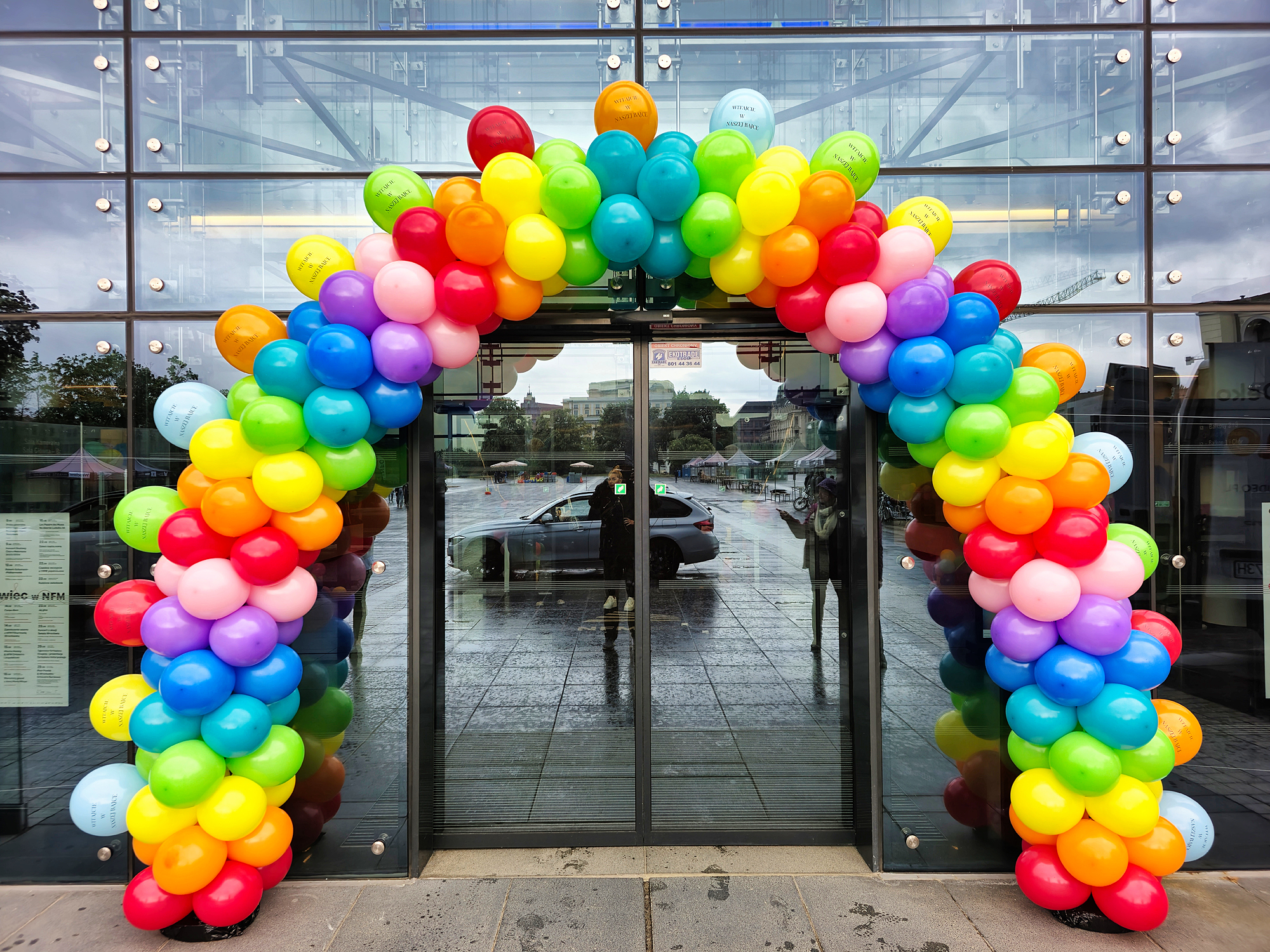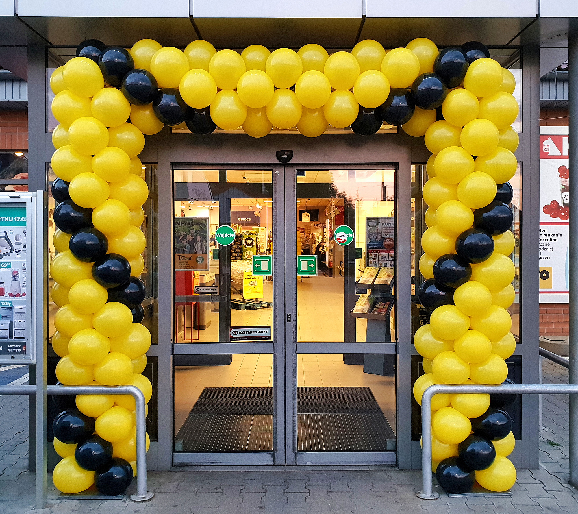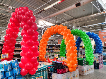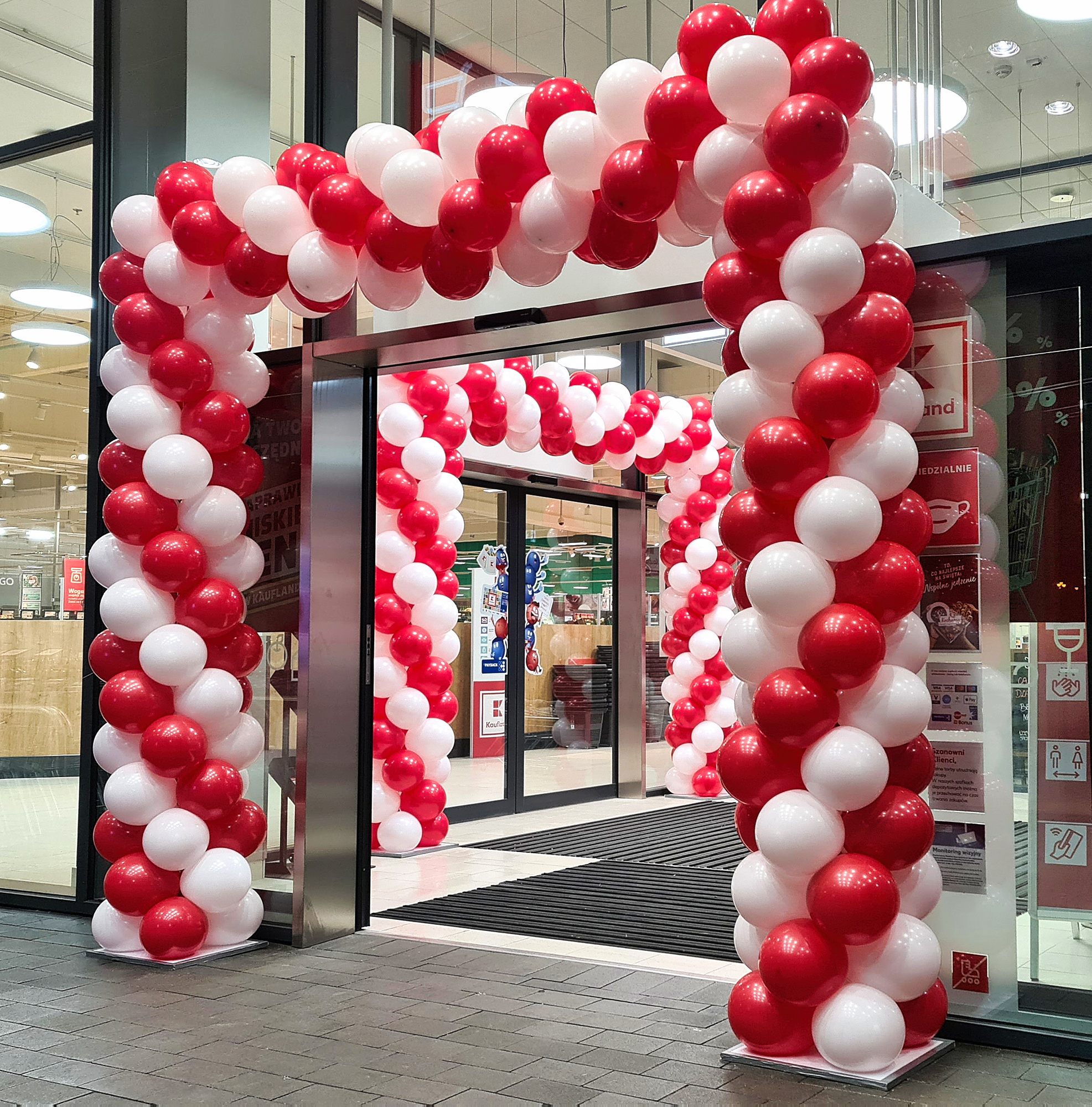 Często pytacie nas, jak długo przetrwa taka brama balonowa? Na tak postawione pytanie, niestety, nie ma jednoznacznej odpowiedzi. W idealnych warunkach balony wytrzymają miesiąc i dłużej. Co im jednak zagraża i zmniejsza ich żywotność? Pierwszym takim czynnikiem jest silne słońce. W czasie letnich upałów słońce padające bezpośrednio na balony jest w stanie zniszczyć je bardzo szybko. W wypadku ciemnych np. granatowych czy czarnych balonów proces destrukcji zachodzi wyjątkowo szybko i takie balony potrafią pękać już po dwóch-trzech godzinach ekspozycji. Drugim takim bardzo niekorzystnym zjawiskiem jest wiatr. Brama z balonów, którą będą szarpać podmuchy wiatru, też długo nie przetrwa. Balony będą ocierać się o elewację i pękać. Następnie wiatr będzie wydmuchiwał kolejne balony. Bardzo silny wiatr powygina stelaż i pozrywa mocujące żyłki. I w zasadzie nie mamy na to wpływu – to tylko balony na delikatnym stelażu. Te dwa zjawiska nie występują w Galeriach, więc tam zazwyczaj balonowe bramy stoją znacznie dłużej. Jest jednak jeden czynnik, który prowadzi do szybkiego zniszczenia bram, zarówno tych postawionych wewnątrz, jak i na zewnątrz. Tym czynnikiem są klienci, którzy potrafią wyrywać balony dla dzieci czy na pamiątkę. Chęć posiadania takiego pięknego kolorowego balonika jest tak silna, że potrafią zniszczyć fragmenty bramy będące w zasięgu rąk. Tu pewnym przeciwdziałaniem jest rozdawanie balonów na patyczkach i w ten sposób zaspokajanie potrzeby posiadania własnego balonika. Zwiększa to szanse, że brama zostanie oszczędzona. W dziedzinie niszczenia balonów dużą pomysłowością wykazują się również nocni wędrowcy znajdujący się pod wpływem alkoholu. Co jeszcze może zaszkodzić balonom? – w pewnych wypadkach deszcz. Balony mocno się elektryzują i krople wody gromadzą się na nich znacząco zwiększając ich wagę. Przy dużych bramach, zwłaszcza stojących w oddaleniu od elewacji, waga konstrukcji w czasie deszczu może okazać się na tyle ciężka, że stelaż nie wytrzyma i się załamie. Natomiast balonom nie szkodzi mróz, więc również zimą można stawiać bramy z balonów na zewnątrz. Ze względu na brak silnego słońca przetrwają one dłużej niż te montowane latem.