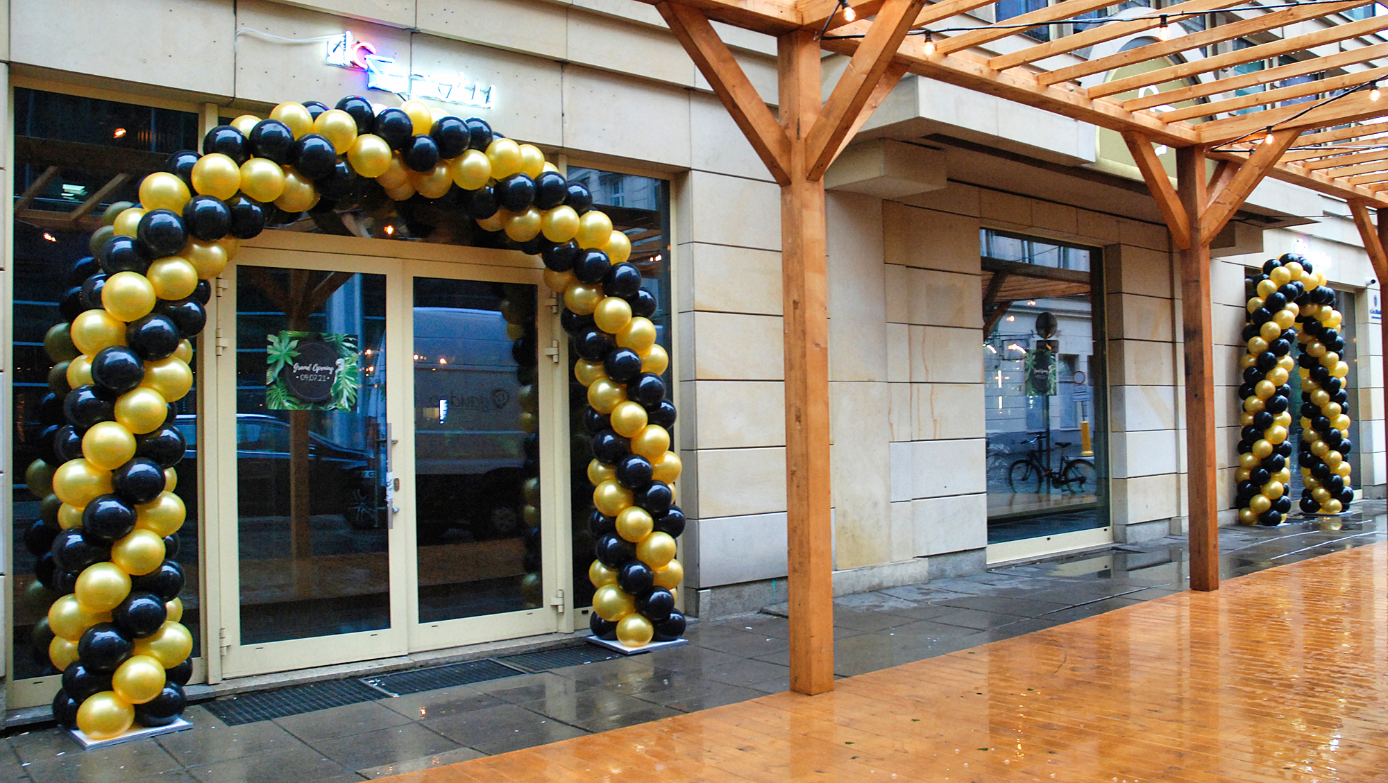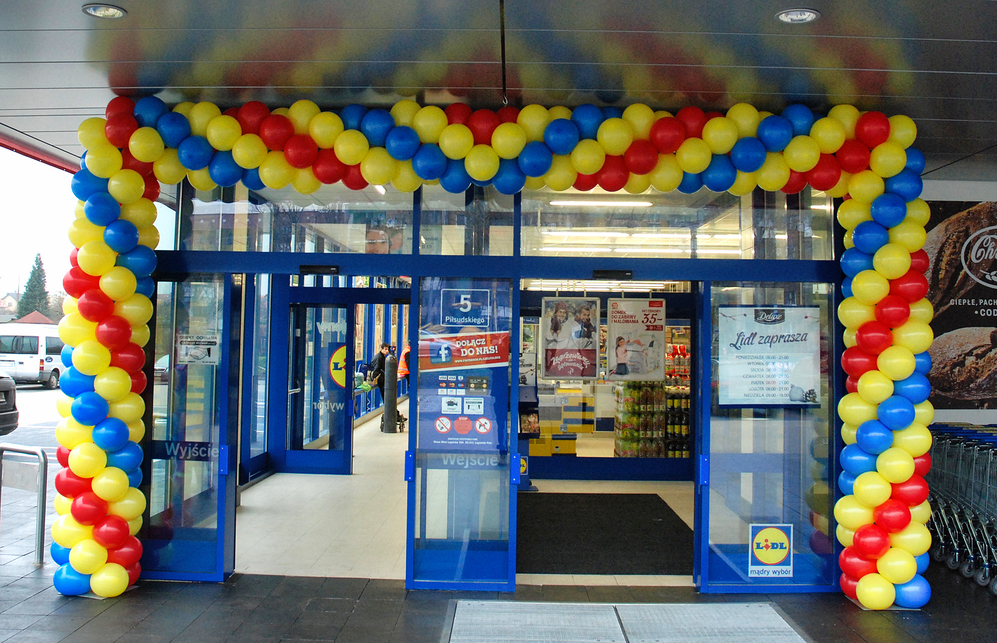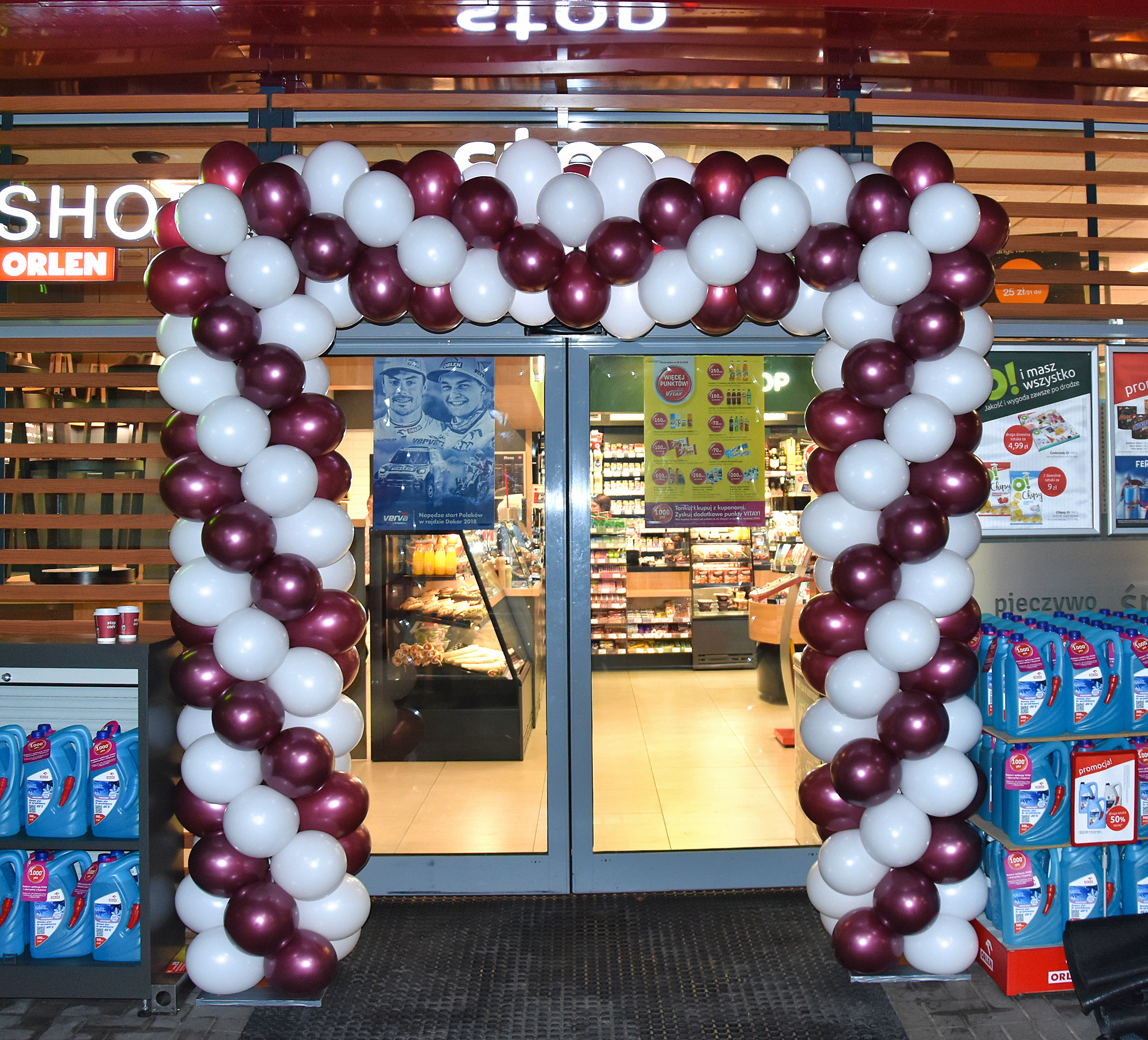 Często pytacie nas, jak długo przetrwa taka brama balonowa? Na tak postawione pytanie, niestety, nie ma jednoznacznej odpowiedzi. W idealnych warunkach balony wytrzymają miesiąc i dłużej. Co im jednak zagraża i zmniejsza ich żywotność? Pierwszym takim czynnikiem jest silne słońce. W czasie letnich upałów słońce padające bezpośrednio na balony jest w stanie zniszczyć je bardzo szybko. W wypadku ciemnych np. granatowych czy czarnych balonów proces destrukcji zachodzi wyjątkowo szybko i takie balony potrafią pękać już po dwóch-trzech godzinach ekspozycji. Drugim takim bardzo niekorzystnym zjawiskiem jest wiatr. Brama z balonów, którą będą szarpać podmuchy wiatru, też długo nie przetrwa. Balony będą ocierać się o elewację i pękać. Następnie wiatr będzie wydmuchiwał kolejne balony. Bardzo silny wiatr powygina stelaż i pozrywa mocujące żyłki. I w zasadzie nie mamy na to wpływu – to tylko balony na delikatnym stelażu. Te dwa zjawiska nie występują w Galeriach, więc tam zazwyczaj balonowe bramy stoją znacznie dłużej. Jest jednak jeden czynnik, który prowadzi do szybkiego zniszczenia bram, zarówno tych postawionych wewnątrz, jak i na zewnątrz. Tym czynnikiem są klienci, którzy potrafią wyrywać balony dla dzieci czy na pamiątkę. Chęć posiadania takiego pięknego kolorowego balonika jest tak silna, że potrafią zniszczyć fragmenty bramy będące w zasięgu rąk. Tu pewnym przeciwdziałaniem jest rozdawanie balonów na patyczkach i w ten sposób zaspokajanie potrzeby posiadania własnego balonika. Zwiększa to szanse, że brama zostanie oszczędzona. W dziedzinie niszczenia balonów dużą pomysłowością wykazują się również nocni wędrowcy znajdujący się pod wpływem alkoholu. Co jeszcze może zaszkodzić balonom? – w pewnych wypadkach deszcz. Balony mocno się elektryzują i krople wody gromadzą się na nich znacząco zwiększając ich wagę. Przy dużych bramach, zwłaszcza stojących w oddaleniu od elewacji, waga konstrukcji w czasie deszczu może okazać się na tyle ciężka, że stelaż nie wytrzyma i się załamie. Natomiast balonom nie szkodzi mróz, więc również zimą można stawiać bramy z balonów na zewnątrz. Ze względu na brak silnego słońca przetrwają one dłużej niż te montowane latem.