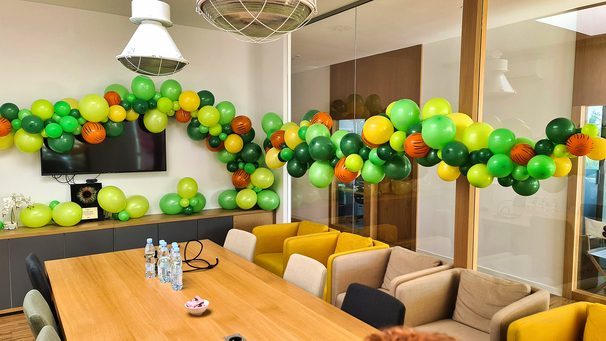 Nasze dekoracje balonowe to coś więcej niż tylko ozdoby – to interaktywna, kolorowa scenografia, która tworzy klimat zabawy i zachwytu już od pierwszego spojrzenia. Dzięki naszemu doświadczeniu i kreatywności możemy stworzyć niemal wszystko z balonów – od ulubionych bohaterów bajek, przez wesołe zwierzątka, aż po fantazyjne rośliny i magiczne scenki tematyczne.