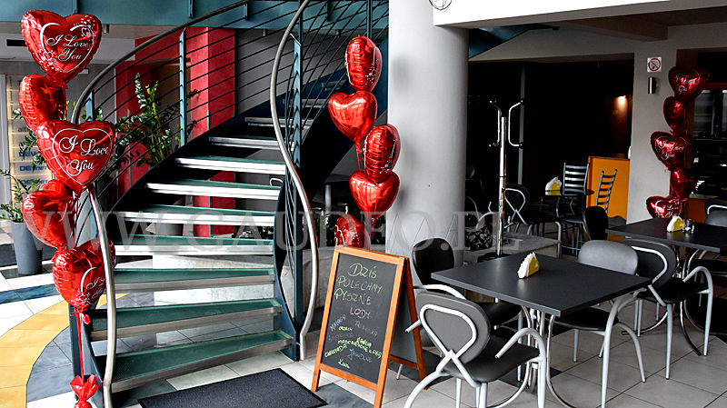 Odkąd sięgam pamięcią cukiernia na Komandorskiej we Wrocławiu słynęła ze swoich wyjątkowych lodów. Dziś jej asortyment został poszerzony, jednak dalej królują w nim przepyszne lody. Wychodząc naprzeciw oczekiwaniom klientów właściciele dbają nie tylko o doznania smakowe, ale również atmosferę lokalu. I taką okazją do umilenia gościom wizyty w cukierni były Walentynki. Już przed wejściem na filarze przymocowaliśmy wielkie serce wykonane z balonów. Czerwony kolor wyraźnie prezentował się na tle budynku i widoczny był już z bardzo daleka. Wewnątrz lokalu ustawiliśmy walentynkowe stroiki helowe. Wykonane zostały z balonów foliowych w kształcie serc i rozmieszczone tak, aby wpadały w oko niezależnie od miejsca, w którym goście usiądą. Takie walentynkowe dekoracje balonowe świetnie wprowadziły do lokalu nastrój święta miłości. A tego goście oczekują w tym wyjątkowym dniu i przekłada się to bezpośrednio na ich poziom zadowolenia.