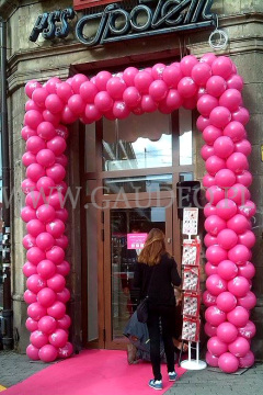 Otwarcie nowego salonu sieci Hebe na ulicy Podwale we Wrocławiu to świetna okazja do wykonania bramy balonowej. Jaskrawo różowe balony świetnie wyróżniały się na tle szarości ulicy. Dzięki temu taka balonowa brama była doskonale widoczna już spod wrocławskiej opery. To był świetny pomysł na wyróżnienie sklepu i pokazanie klientom, iż remont dobiegł końca i sklep zaczął działać.
