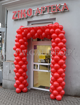 Brama z czerwonych balonów stanęła przed wejściem do nowej apteki sieci Ziko. Tym razem towarzyszyliśmy odpaleniu lokalu usytuowanego na ulicy Pomorskiej we Wrocławiu. Rozmiarami nie należała do największych, gdyż musieliśmy zmieścić ją pod wystającym z budynku daszkiem. Jednak jaskrawo czerwony kolor, w jakim została wykonana, doskonale przyciągał uwagę. Już sam proces wykonywania bramy spowodował, iż wiele osób przystawało i przyglądało się. Niestety w nocy balony przyciągnęły również wandali, którzy ją zniszczyli. Chuligaństwo w kwestiach balonowych to jednak odrębny temat, który opiszemy innym razem. A dziś zapraszamy wszystkich nowych i starych klientów sieci aptek do korzystania z jej nowego punktu.