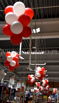 Dziś w Toruniu miało miejsce uroczyste otwarcie nowego sklepu sieci Kaufland. W celu uświetnienia tej uroczystości wykonaliśmy balonową dekorację sklepu. Tradycyjnie girlandy z balonów zostały rozwieszone przy wejściu. Natomiast nad całą powierzchnią sprzedażową rozwieszone zostały balonowe sople- czyli krótkie girlandy. Do tego przez cały dzień otwarcia nasza ekipa na zapleczu sklepowym pompowała balony powietrzem i zakładała je na patyczki. Oczywiście na balonach wykonaliśmy wcześniej nadruk logo sklepu. Następnie były one zabierane przez śliczne hostessy i rozdawane klientom którzy chętnie zabierali je na pamiątkę otwarcia. Kto z czytelników był w Toruniu mógł to wszystko obejrzeć na żywo, a kto nie był, może skorzystać z naszego mini fotoreportażu.