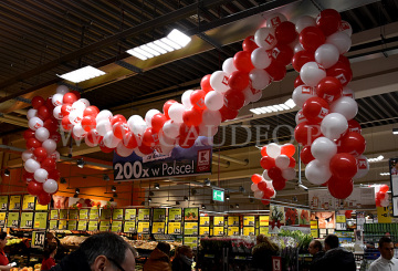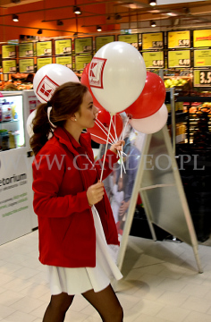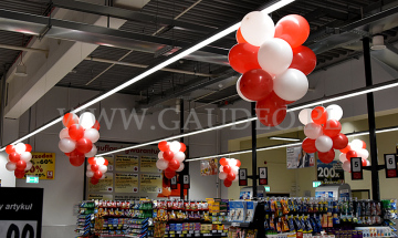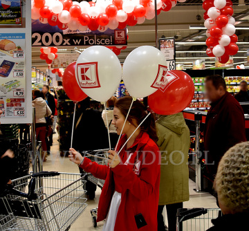 Dekoracje balonowe to nieodzowny element towarzyszący otwarciom nowych marketów sieci Kaufland. Tym razem swe podwoje otwierał sklep usytuowany w Świdnicy. A więc nie mogło braknąć nas i dekoracji z balonów. Nad wejściem od strony parkingu zawisła girlanda. Takie same girlandy zawisły również nad wejściem do sklepu. Wykonane zostały z balonów na których nadrukowane zostało logo sieci Kaufland. Dodatkowo na całym terenie sklepu rozwieszone zostały balonowe sople. Taka dekoracja sklepu zaprasza klientów do świętowania wraz ze sklepem. Oczywiście nie mogło braknąć balonów z nadrukiem które zostały założone na patyczki. Takie balony reklamowe hostessy rozdawały wśród odwiedzających sklep. Ludzie zawsze chętnie je biorą i z dumą obnoszą po mieście przez które wracają po dokonaniu zakupów.