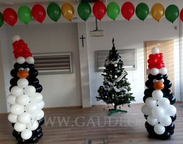 Świąteczna dekoracja balonowa z zimowymi pingwinkami