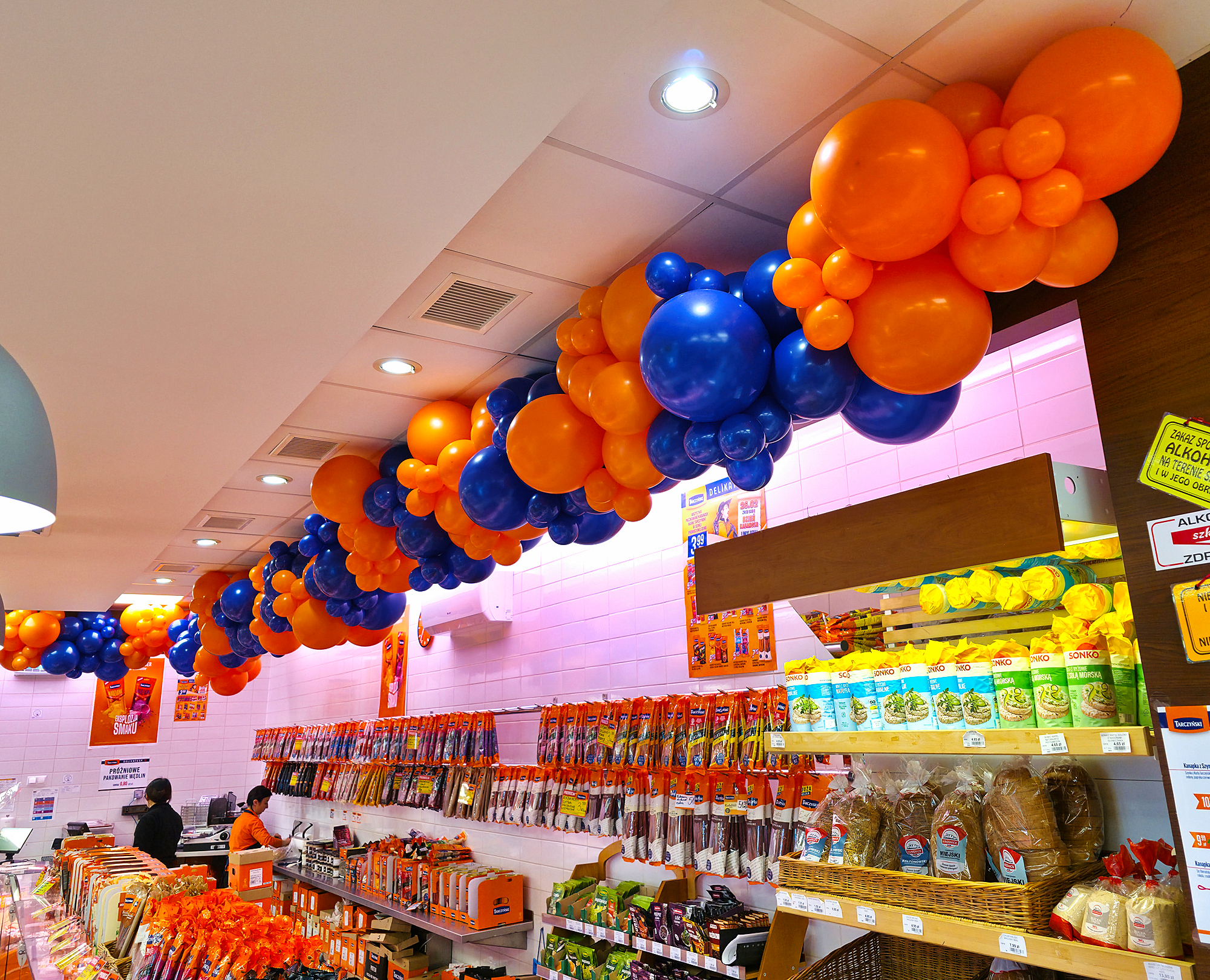 Dekoracje z balonów w sklepie firmowym Tarczyński z okazji 35 urodzin i Dnia Kabanosa