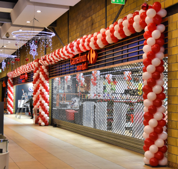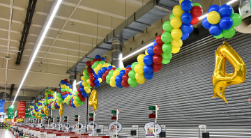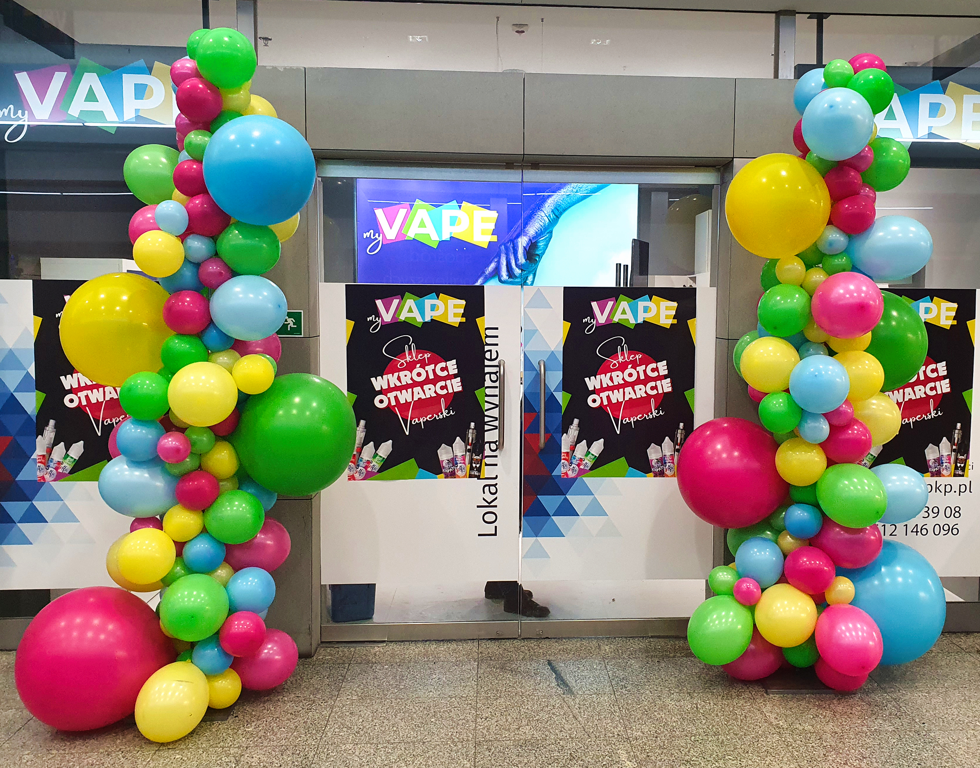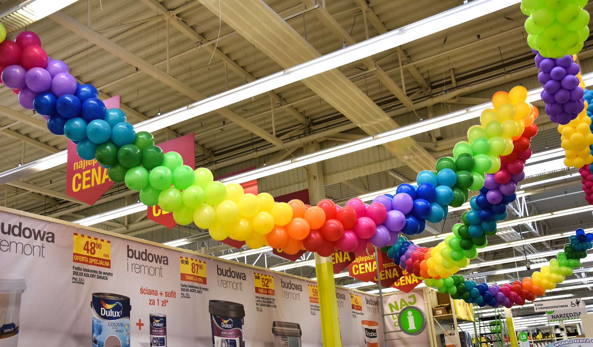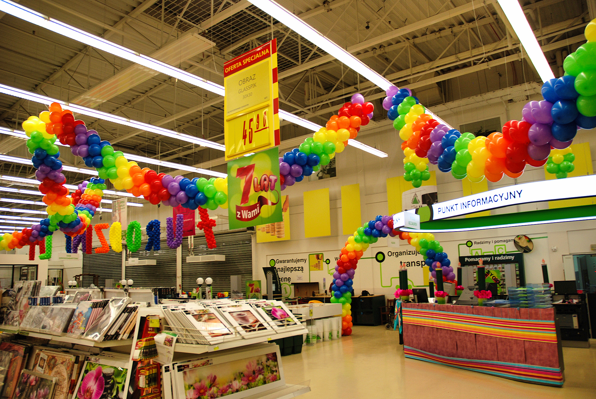 Maksymalna widoczność (Efekt "WOW"):Kolorowe girlandy i bramy balonowe są widoczne z daleka. Skutecznie wyróżniają Twój sklep na tle szarych elewacji i konkurencji w galeriach handlowych.
